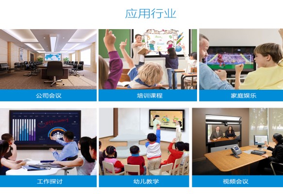4大高頻應用,會議白板、文件管理、貴賓接待、多屏互動,采用圓形按鈕設計,雙排布局,高效調用;